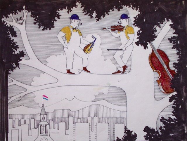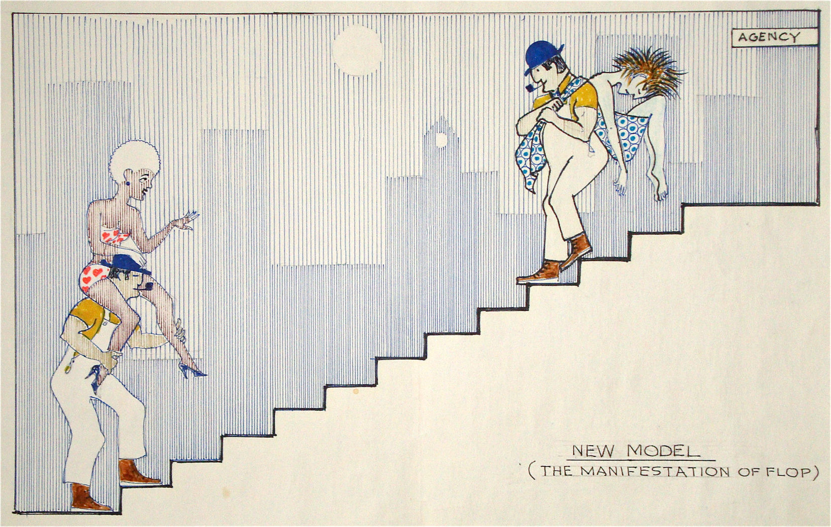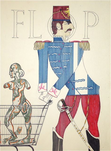Floyd’s drawings were rarely explained, so we’ve no idea what connection this image has to the story of Flop, one of Floyd’s recurring characters. A simpler version of this concept is in his book; it may represent an earlier approach to the subject.
